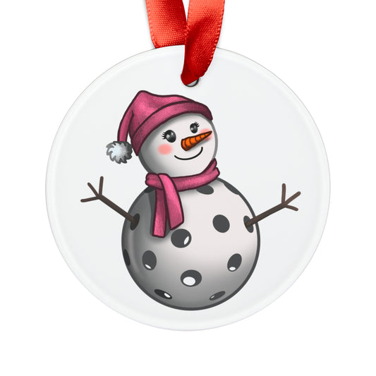 Acrylic Doublesided Pickleball Snowman Ornament with Ribbon