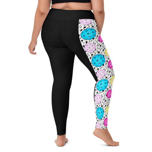 80's Pickleball Pattern Waist Crossover Leggings With Pockets